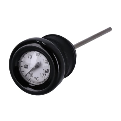 Oil tank dipstick with temperature gauge. Black w/black face