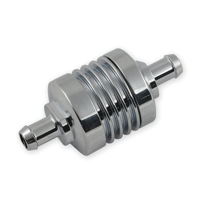 Fuel filter ribbed for 3/8" fuel hose. Chrome