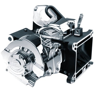 JIMS, 6-speed overdrive Softail transmission. Plain alu