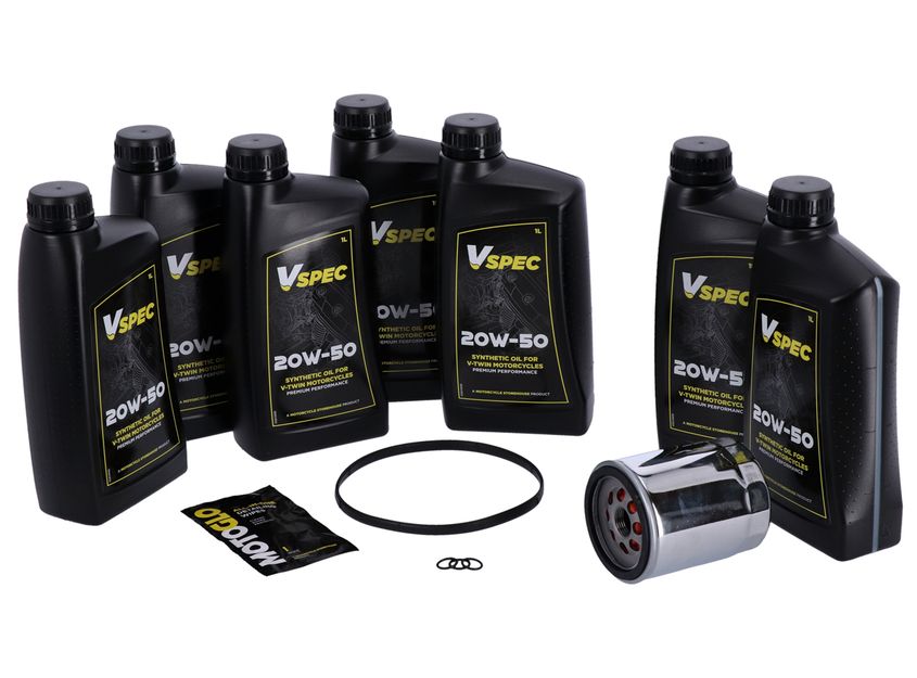 Perfect for home-mechanics and workshops alike, our new Oil Service Kits contain everything you need for a hassle-free oil and filter change in one convenient box. Complete with the correct specification and volume of premium Vspec oil for your bike, a choice of black or chrome oil filter and drain plug o-ring… We even supply a detailing wipe for clean-up duties!