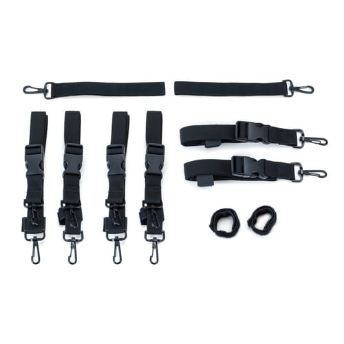 Includes (4) double snap hook straps, (2) single snap hook straps with pull-through loop, (2) hook-and-loop straps, and (2) hook-and-loop snap straps.