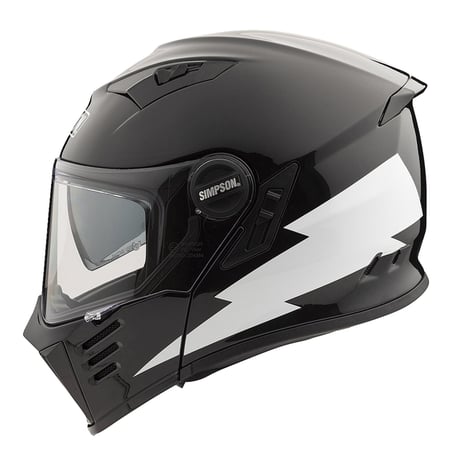 The brand new Simpson Darksome represents the modern expression of an iconic design. This flip-up reminds of the 70’s unique Simpson design, but noise reduction and aerodynamics has been substantially improved. A solid mechanism locks the chinbar in place. The shell features Maxx‐3C tricomposite technology and a lighter, full carbon version is available. The enlarged field of view provides a limit- less vertical and peripheral vision. The drop-down sun visor covers the whole field of view. Features removable and washable inner lining, ready for easy installation of Bluetooth headsets, ECE 22.06 certified. Available in several colors.
