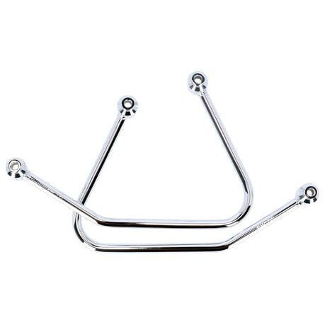 Chromed plated steel pannier supports. Easy bolt-on installation to the original mounting points of the fender. Includes all installation hardware.