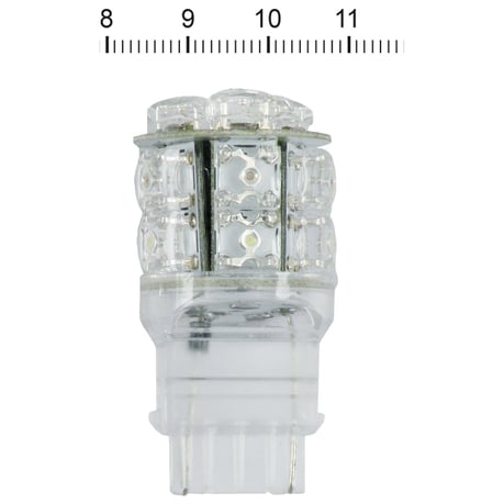 Single (3156 base style) function. With glass wedge base. SuperFlux LED bulbs are designed to provide a wide viewing angle for uniform lighting. Comes with 13 LEDs.