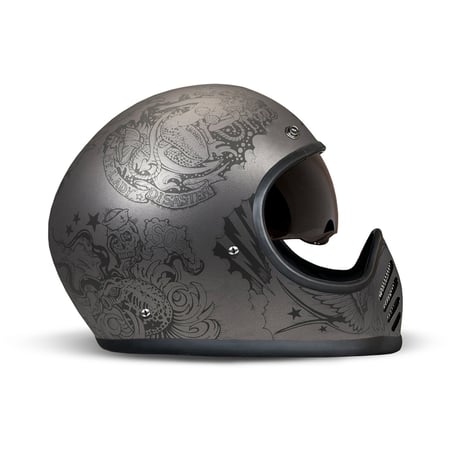 The DMD Seventy Seven is a tribute to the stylish icon of the 70's. It was inspired by the first off-road helmet introduced in 1975. The Seventy Seven helmet is ECE 22.06 approved, Bluetooth ready, integrated sunvisor and it has a carbon Kevlar shell and a padded chin strap with Double D-Ring closure. DMD offers this helmet with 2 different shell sizes for a perfect fit and maximum compactness. The inner liner is removable and washable. Dedicated to all riders who love a quality product that meets all modern safety standards.
